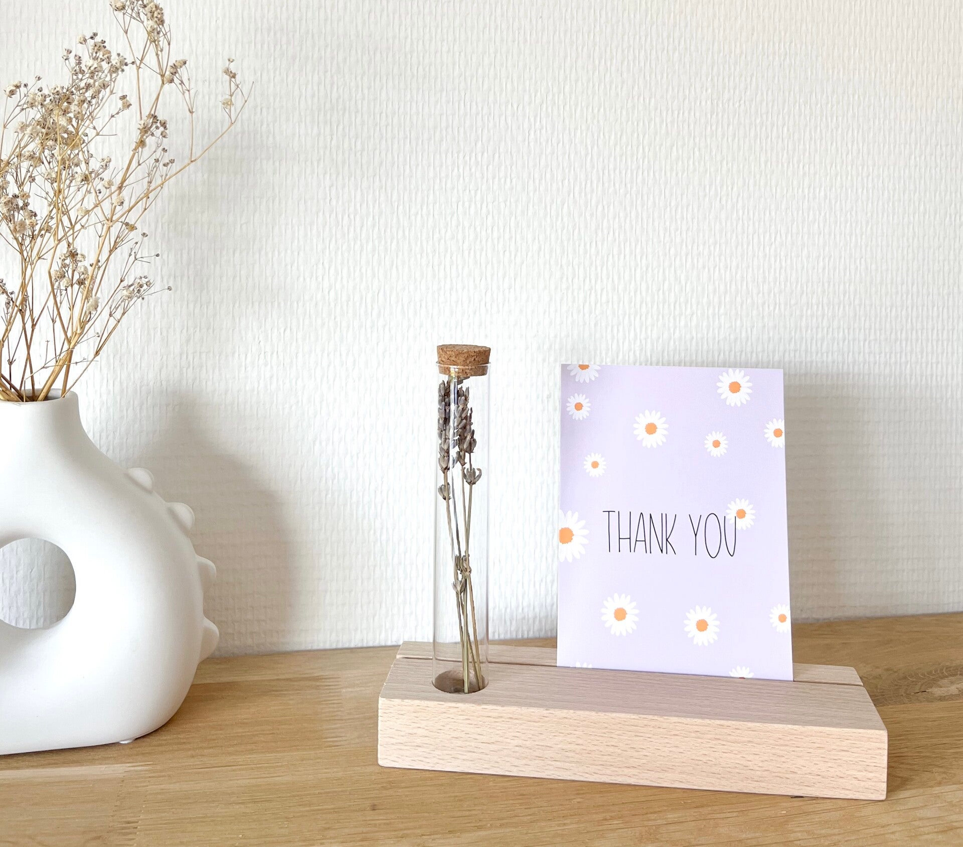 De Memory Shelf wordt geleverd met een vaasje, lavendel en een kaart. Op de achterzijde van de kaart kan een lief persoonlijk tekstje geschreven worden. Het is ook mogelijk om de memory shelf rechtstreeks naar de ontvanger te sturen. Wil je de tekst alvast op het kaartje hebben? Geef dan even in de opmerkingen (bij het plaatsen van je bestelling) aan dat deze rechtstreeks naar de ontvanger mag en wat er op het kaartje geschreven mag worden.