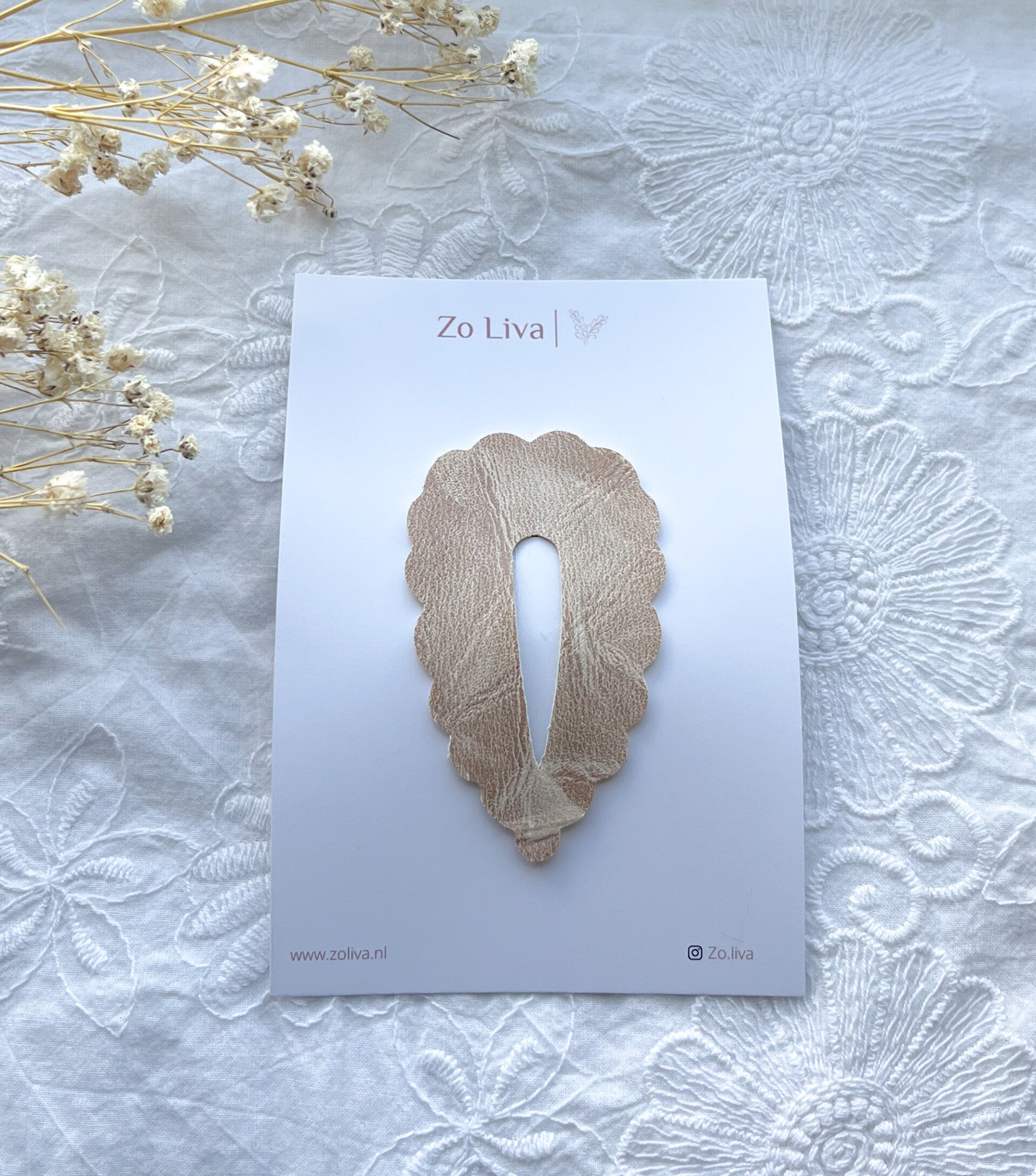 Haarspeldje Lola heeft de vorm van een hartje, zit bevestigd op een 5 cm klik klak speldje en is verkrijgbaar in verschillende kleuren leer.