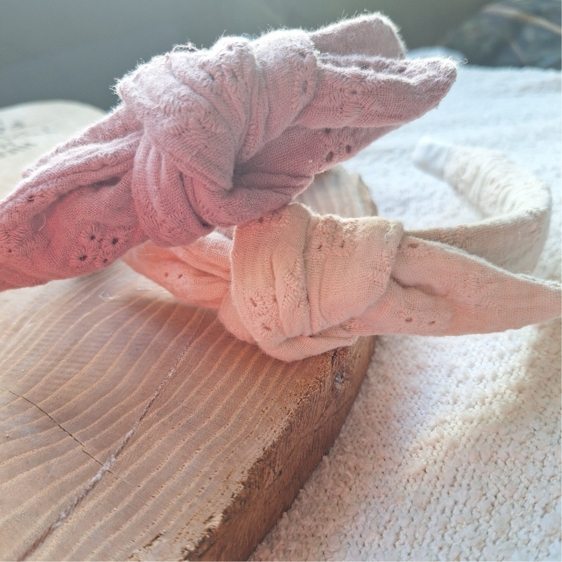 Helemaal hip zijn deze prachtige, stoffen diademen met knoop. De diadeem heeft een mooie broderieprint, is heel zacht en al te dragen vanaf ongeveer 3 jaar.