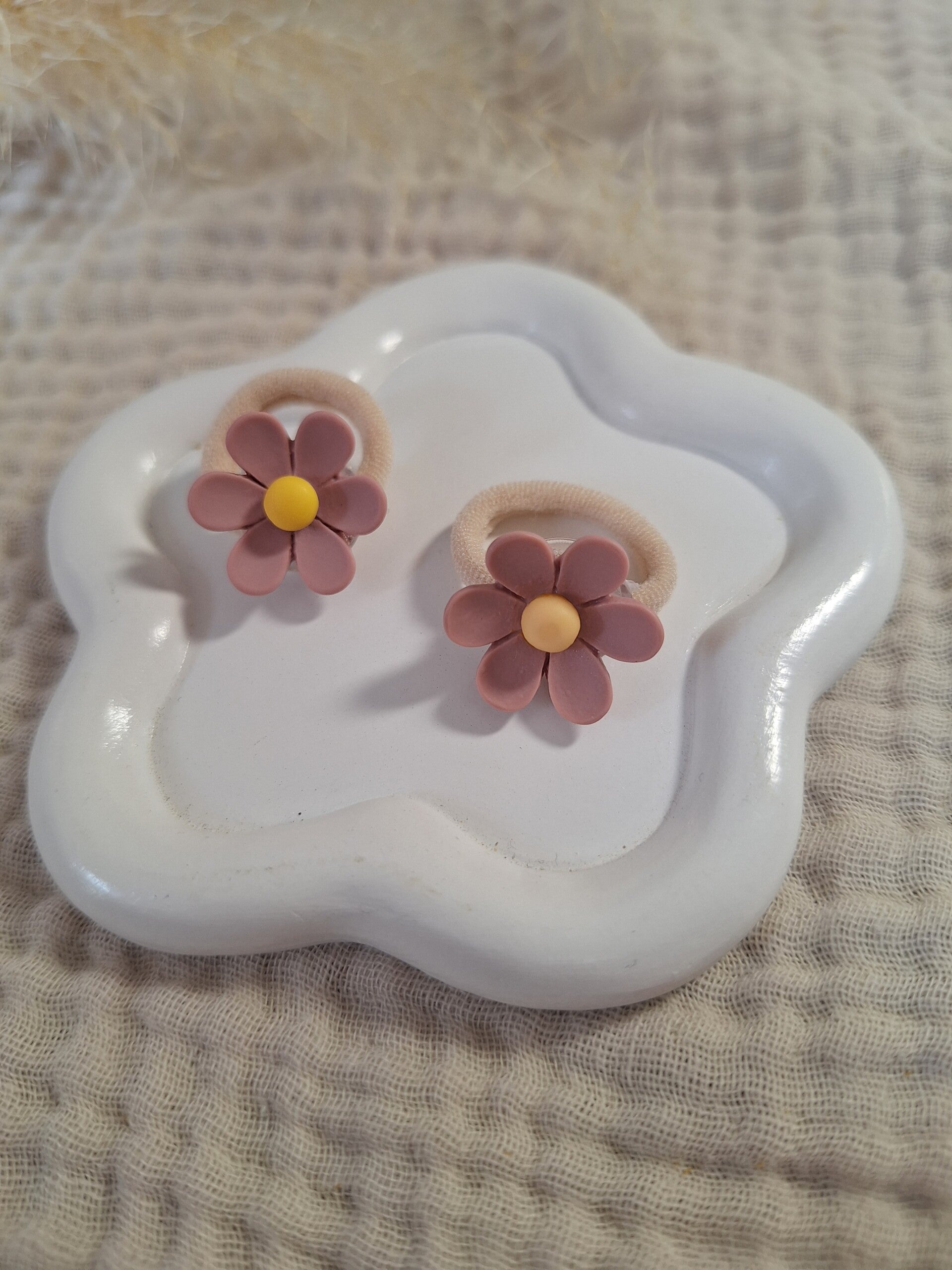 Je shopt ze in diverse kleuren. De bloemetjes zitten bevestigd op een kleine maat elastiek, zo kun je ze al gebruiken voor de kleinste plukjes.