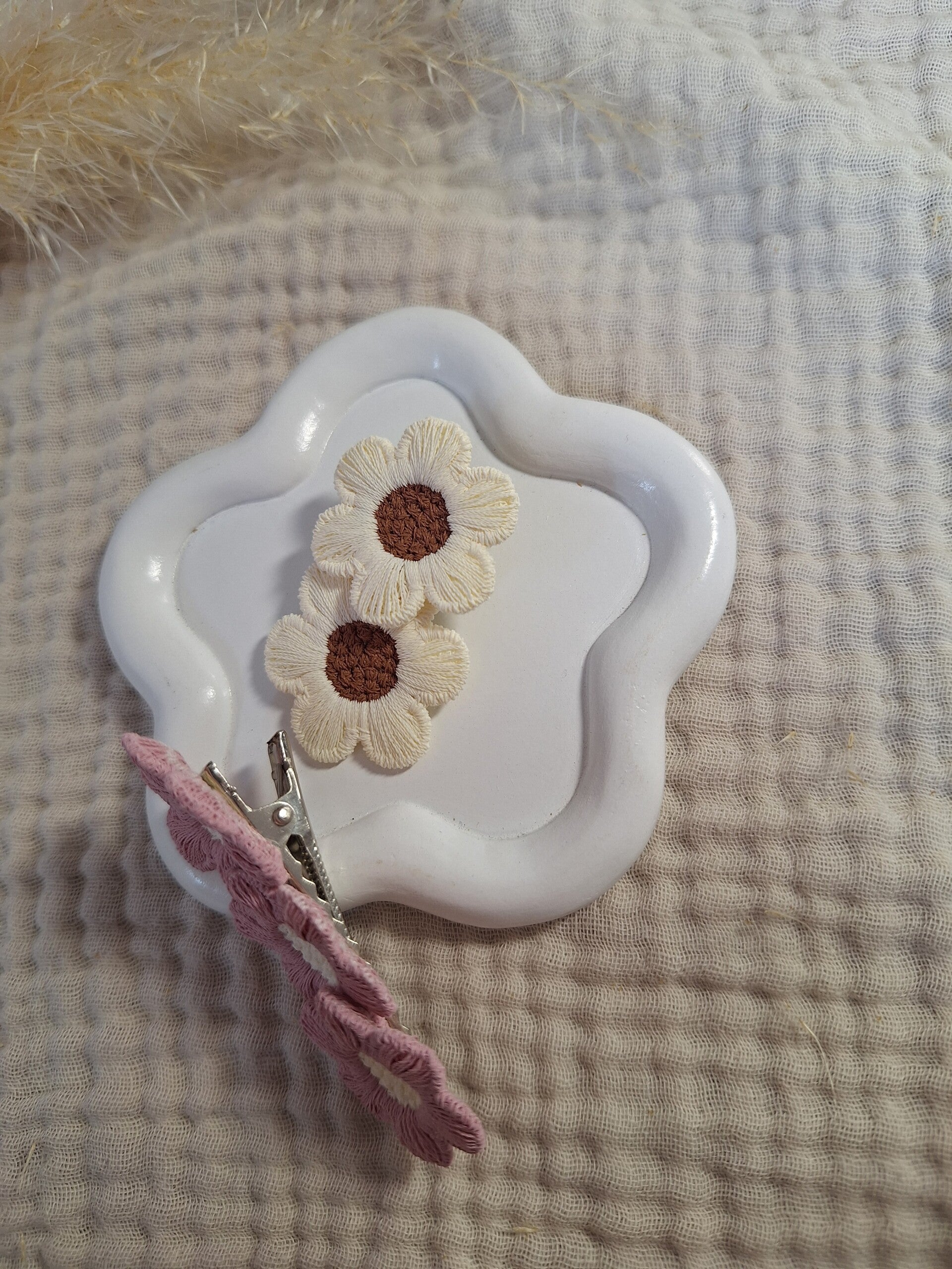 Op de 3,5 cm en 4 cm clip zitten 2 bloemen bevestigd