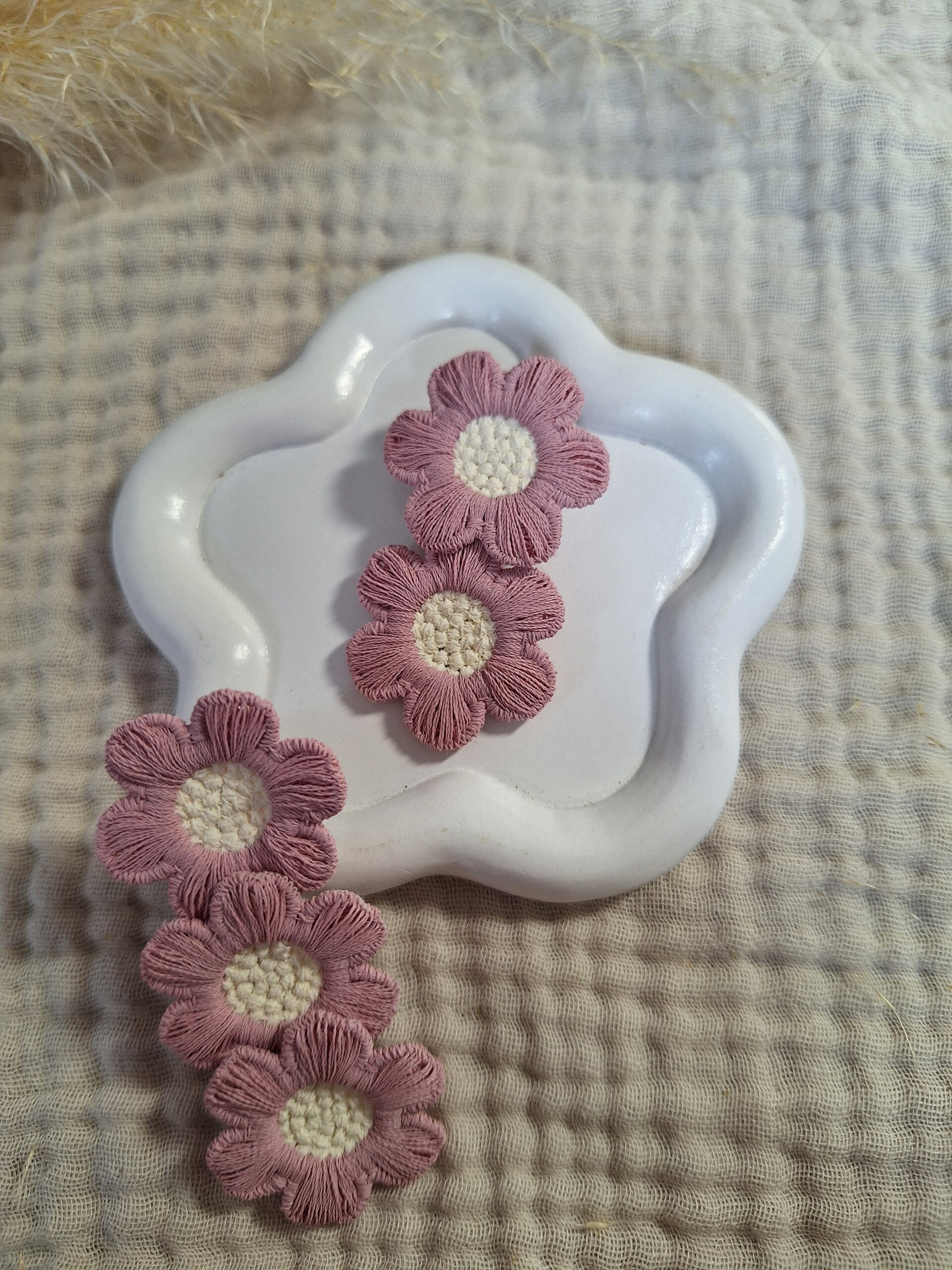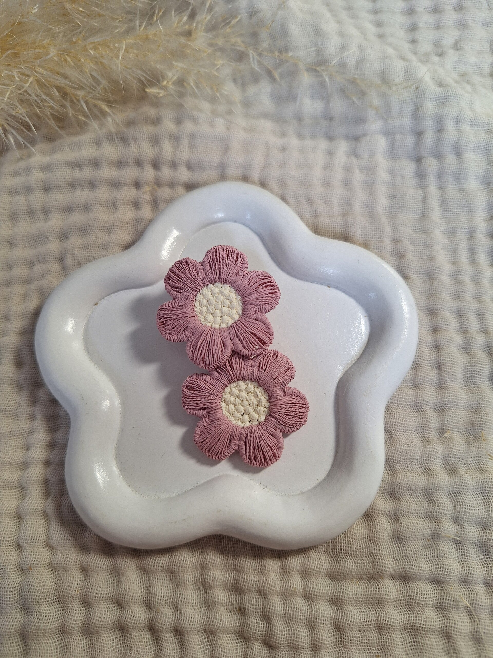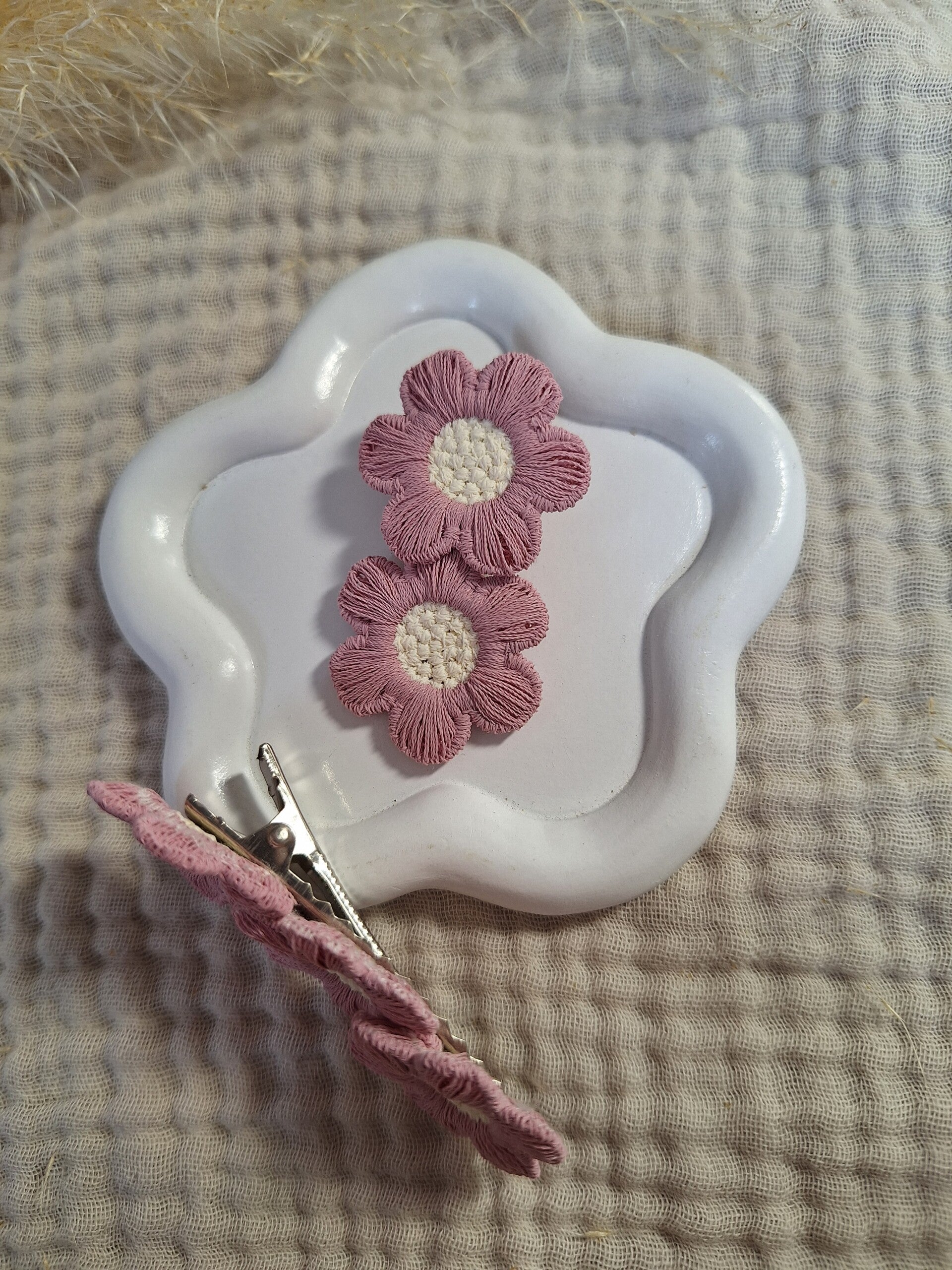 Op de 3,5 cm en 4 cm clip zitten 2 bloemen bevestigd