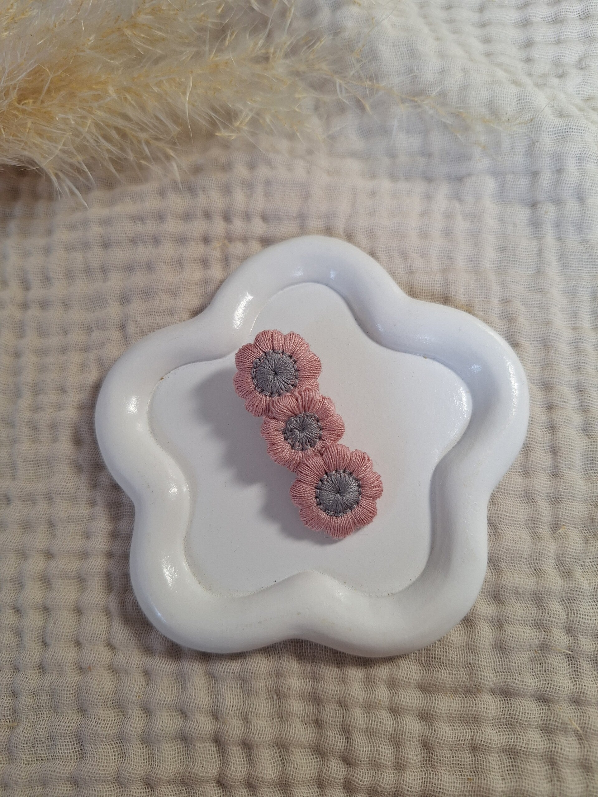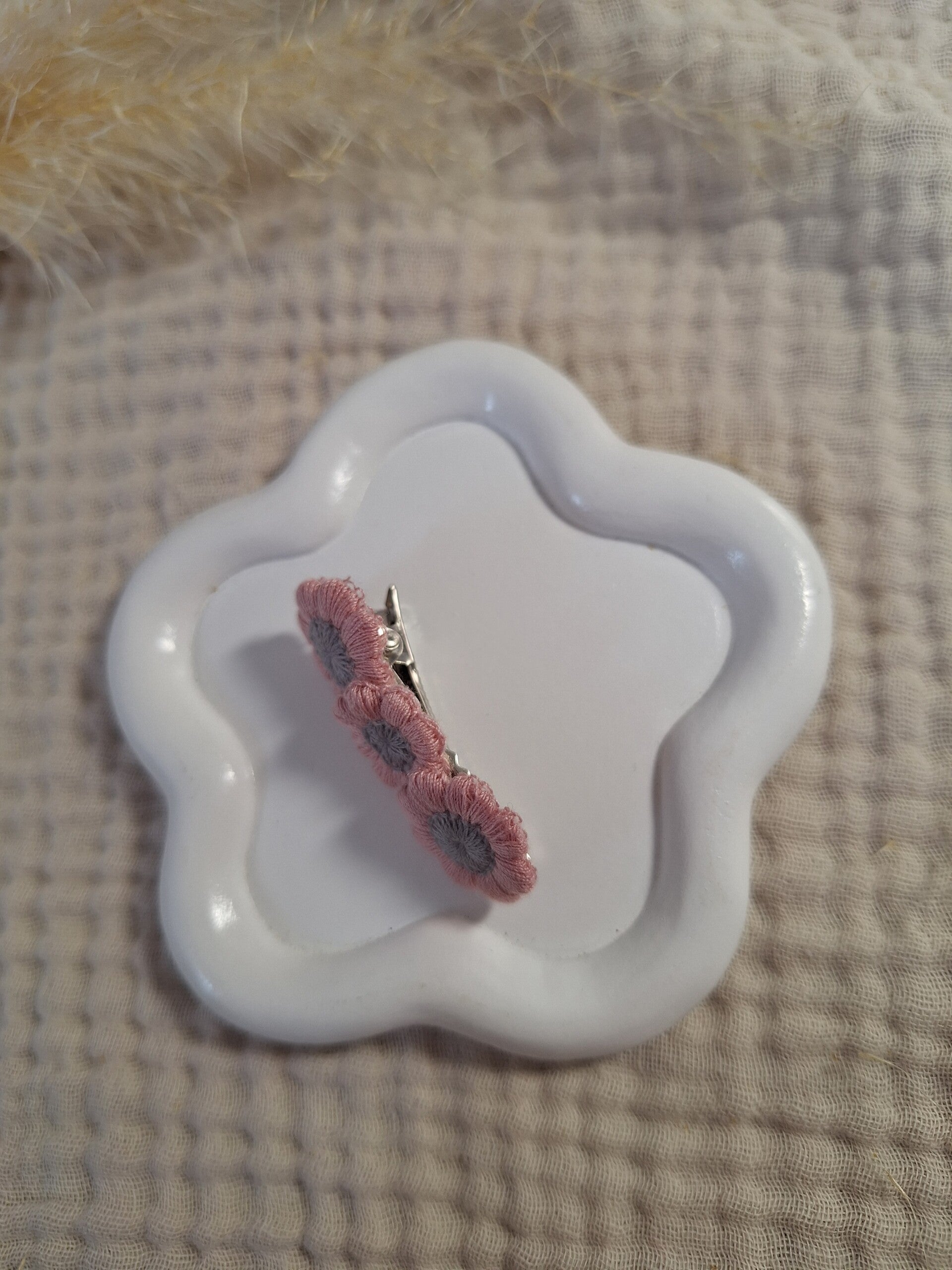 De bloemen zitten bevestigd op een alligator clip. De clip zit stevig, zakt niet uit en is te bestellen in drie verschillende formaten: