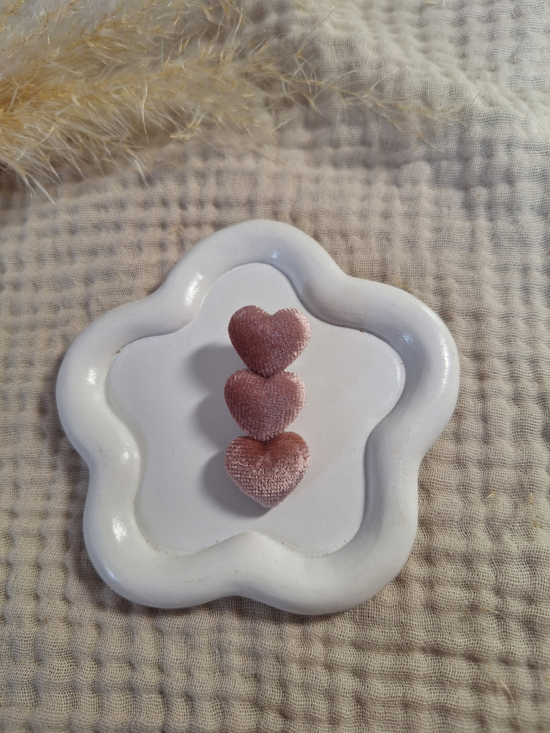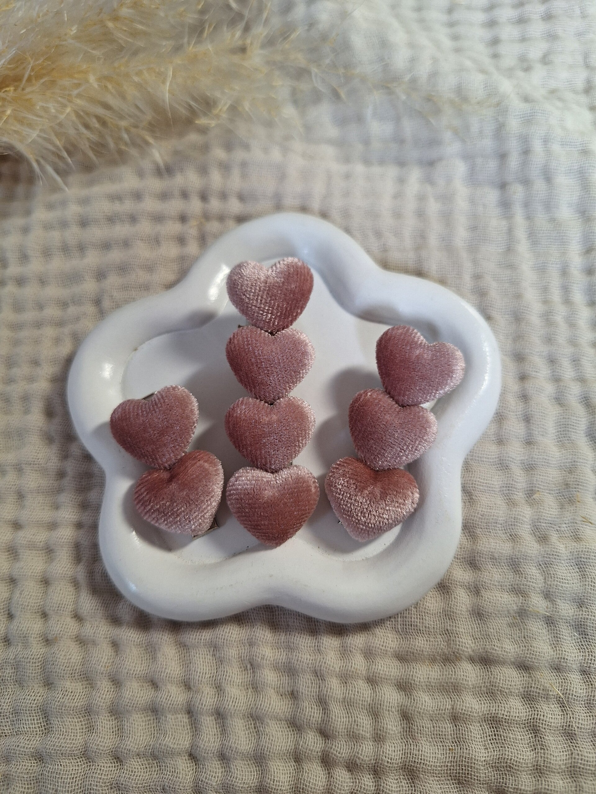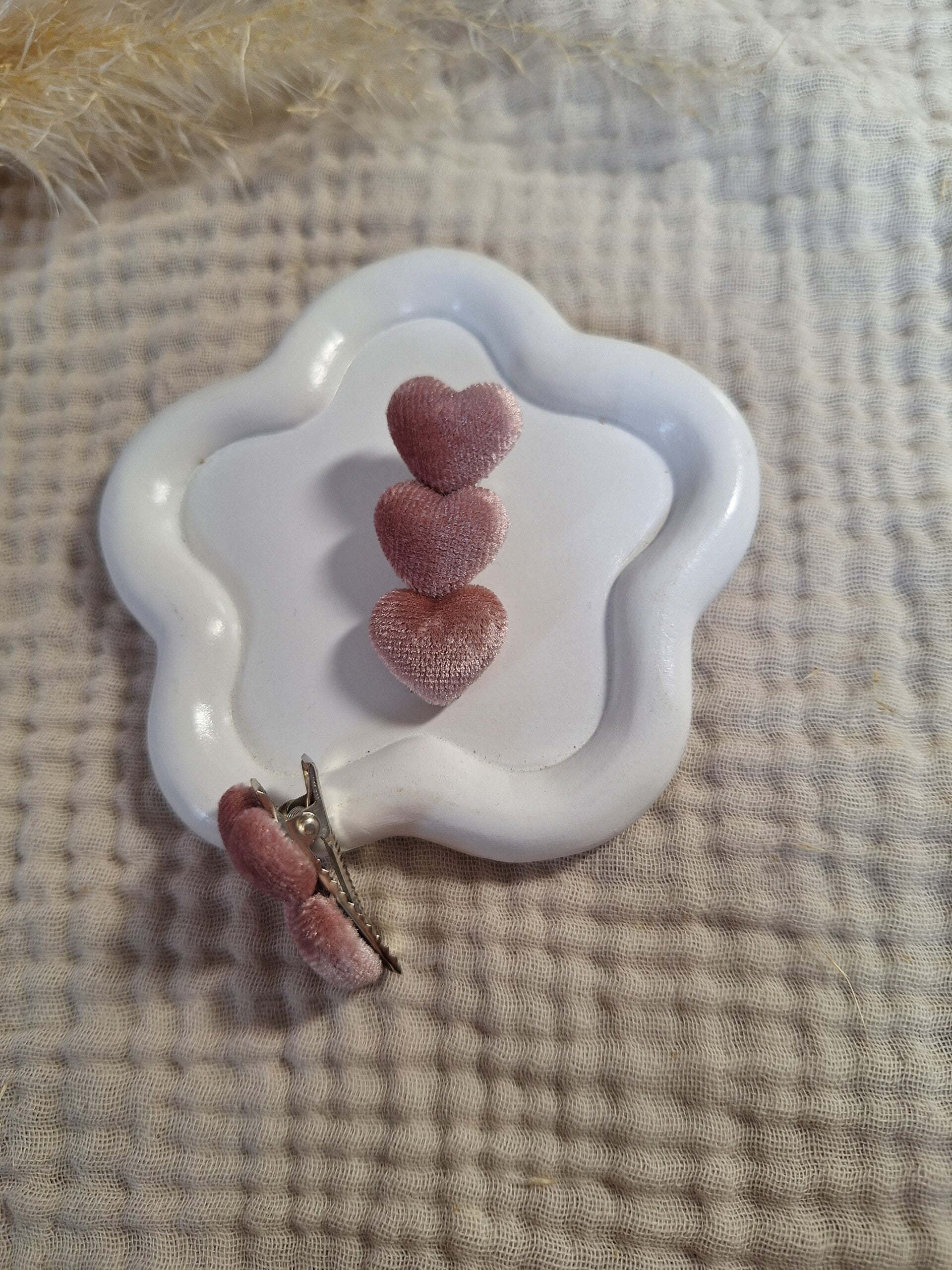 Hoe leuk is deze clip met roze velvet hartjes?