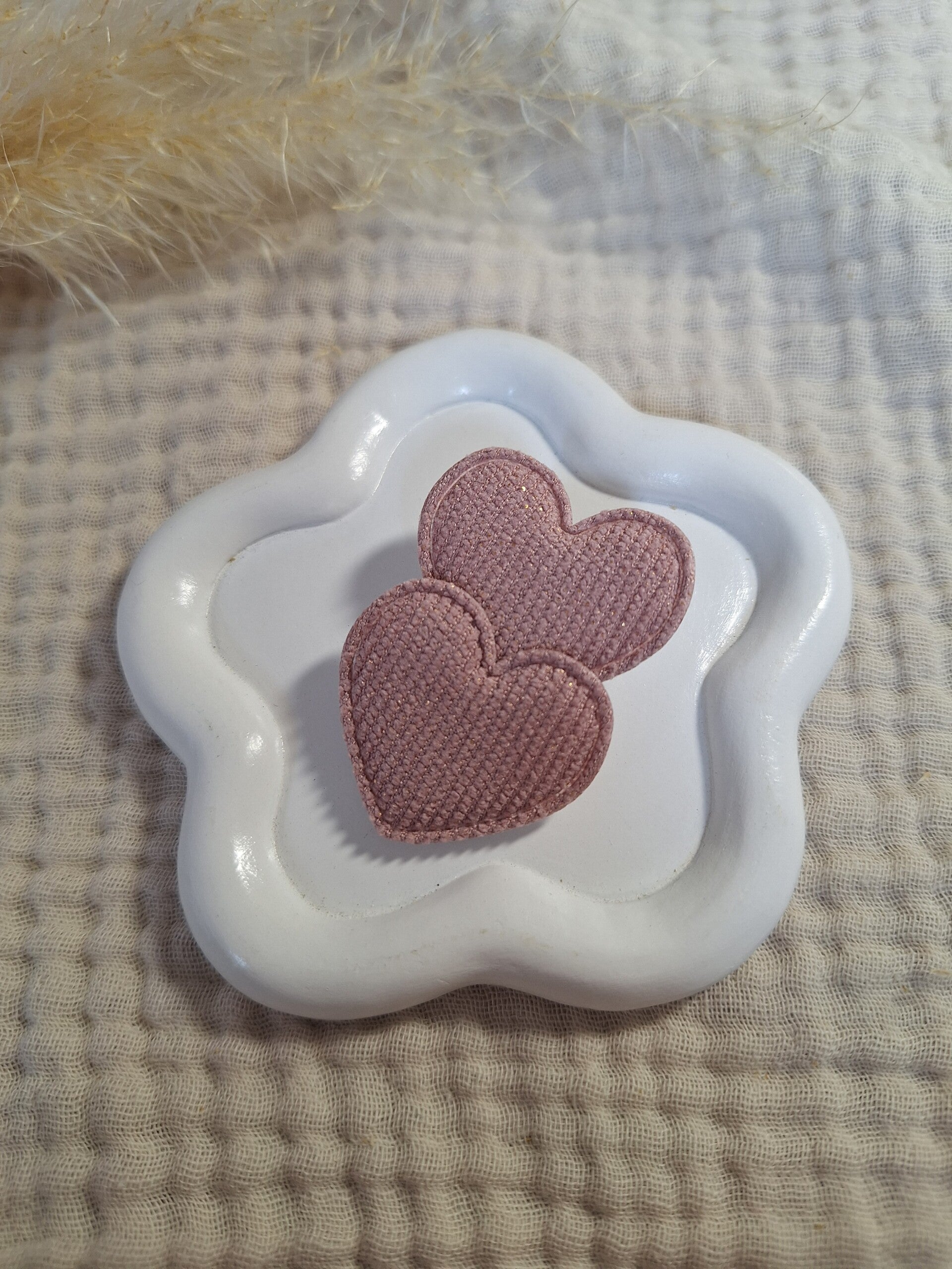 Op de 5,5 cm clip zitten 3 hartjes bevestigd
