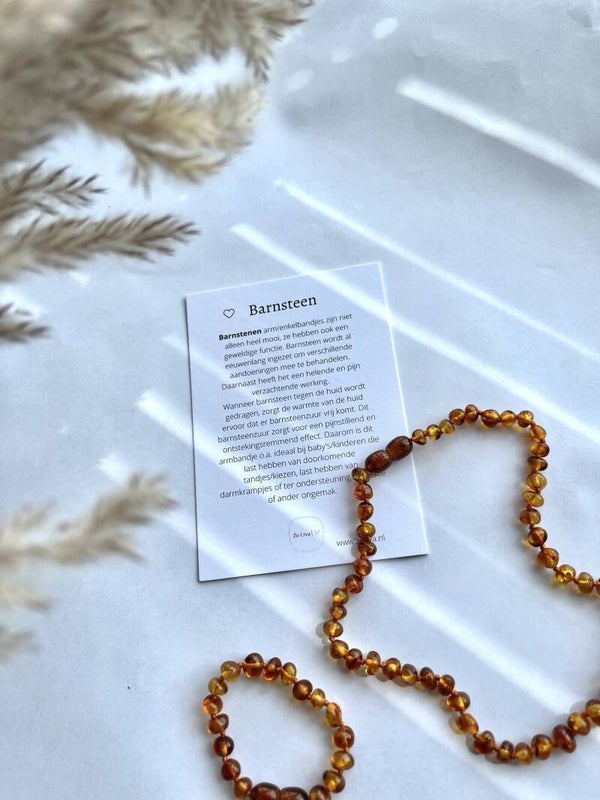 Een prachtig kettinkje voor je baby/kindje. En ze zijn niet alleen heel mooi, ze hebben ook een geweldige functie. Barnsteen (ook wel Amber genoemd) wordt namelijk al eeuwenlang ingezet om verschillende aandoeningen mee te behandelen. Daarnaast heeft het een helende en pijn verzachtende werking.