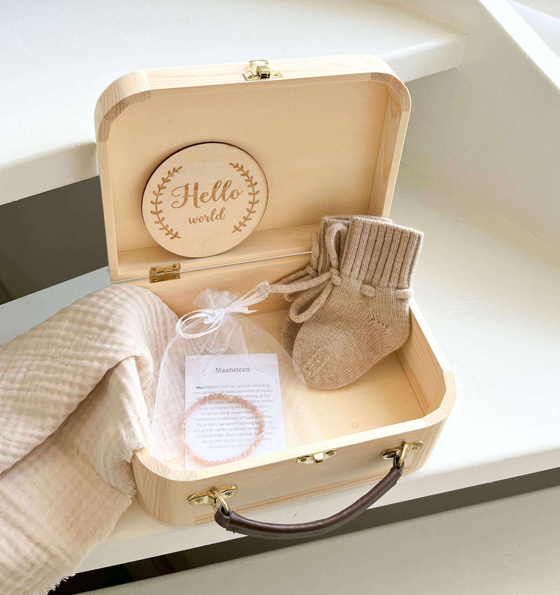- Gepersonaliseerde houten koffer (€21,95)